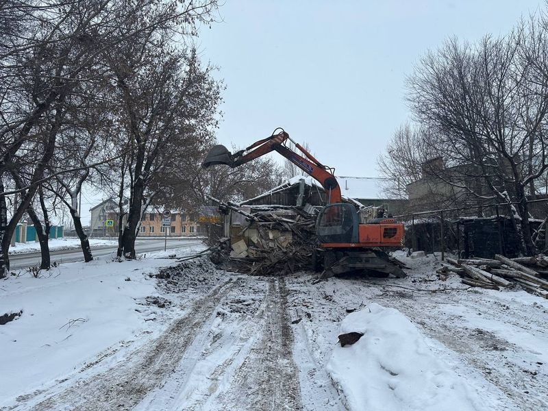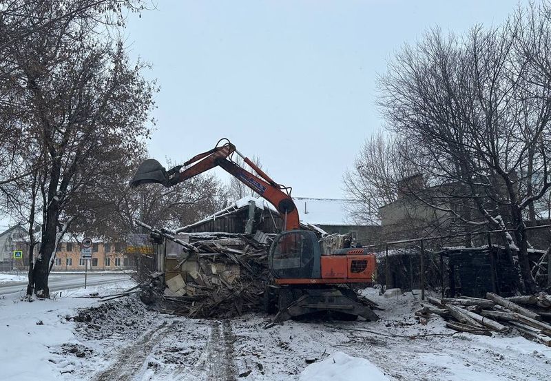 Благодаря технике, был быстро сломан старый барак и ветхие сараи. Работа