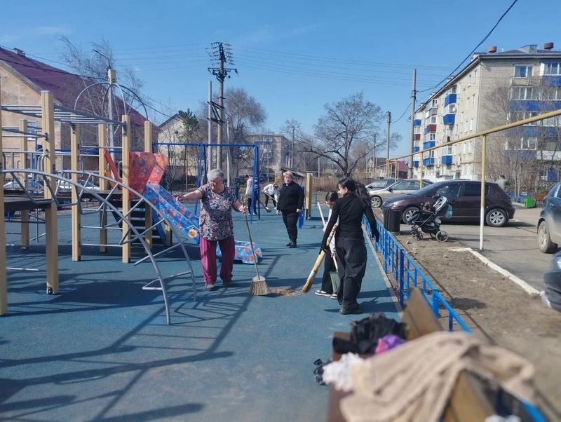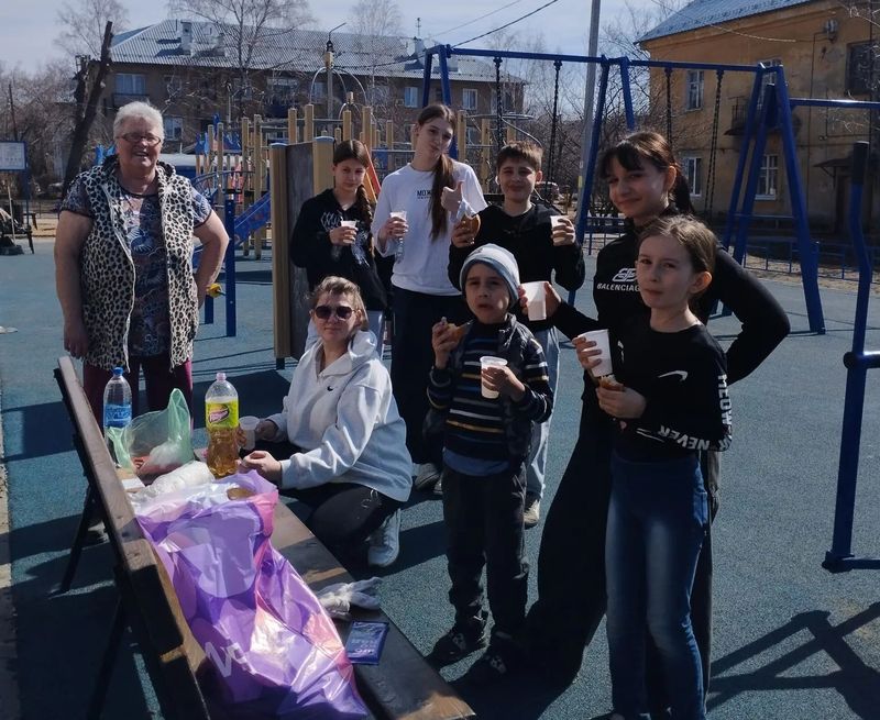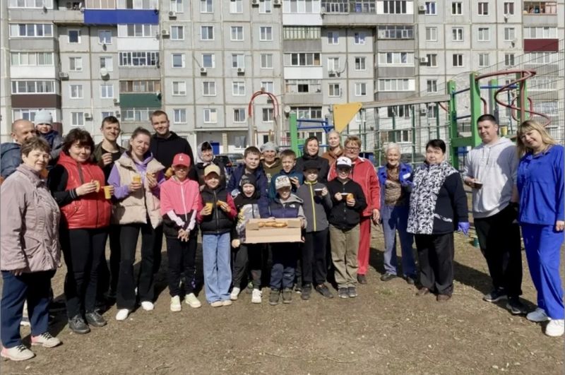 Актив ТОС «Декабристов» сегодня трудился на детской площадке, установленной в 2025 году около домов №№ 155-163. И здесь, к слову, жителей ждала вкусная выпечка в конце работы.