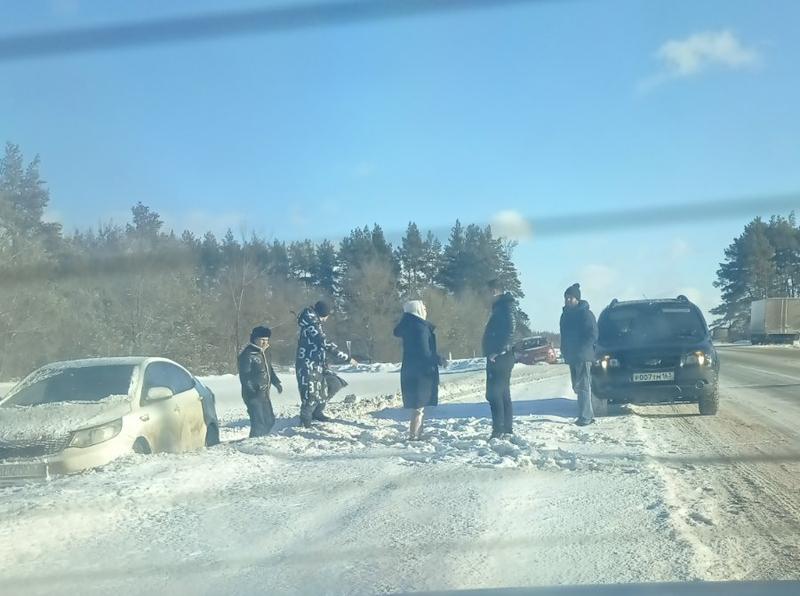 месте происшествия люди помогали вытолкнуть белое авто. По словам