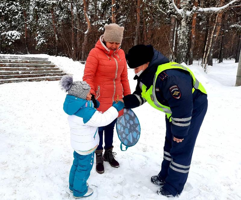 Кроме того, во время патрулирования сотрудники Госавтоинспекции вручали ребятам световозвращающие элементы.