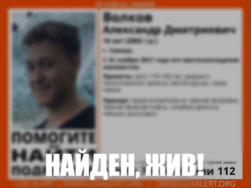 В пятницу, 14 января, в сообществе поискового отряда «Лиза Алерт» появилось сообщение о пропаже в Самаре 16-летнего Александра Волкова. Было отмечено, что его местонахождения неизвестно с 22 ноября. Однако уже вчера вечером в сообществе официально было объявлено, что молодой человек найден и что он жив. Обстоятельства обнаружения юноши не разглашаются. Ранее подписчики паблика сообщали, что подросток сам вернулся домой.