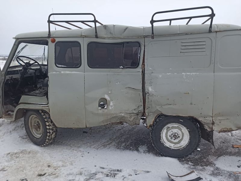 «Буханку» понесло на встречную полосу, но водитель смог вернуть УАЗ на свою половину проезжей части. Однако водитель большегруза, который в это время ехал навстречу, заметив опасность, попытался уйти от столкновения, и сам свернул влево, съехав на полосу УАЗа. В итоге Renault Premium ударил УАЗик в левый бок.