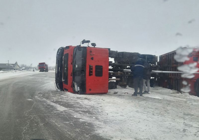 Автомобилисты сообщают о еще одном большегрузе, который завалился на бок. Авария с самосвалом МАЗ произошла неподалеку от Кушниково. Сегодня, 22 января, это как минимум второй большегруз, водитель которого не смог удержать на дороге многотонную машину. Сообщения о том, пострадал сам водитель МАЗа или нет, не поступали. Ранее портал «маленькая Сызрань» сообщал, что на трассе М-5 у так называемого «шигонского» перекрестка лежит на боку тонар. Трасса очень скользкая, водители в социальных сетях рекомендуют друг другу передвигаться с осторожностью.