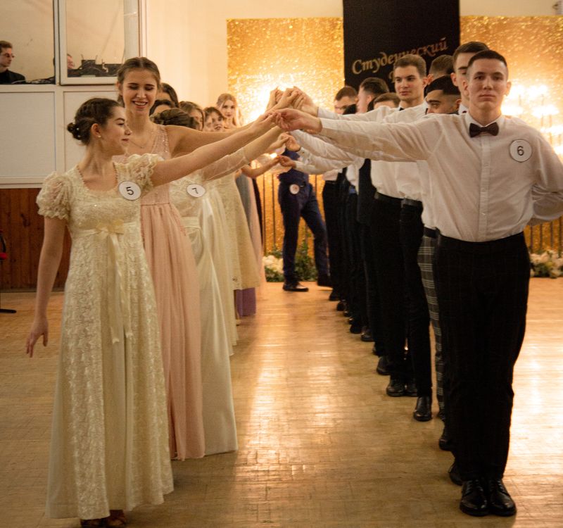Бальные платья, фраки, полонез, падеграс окунули студентов в эпоху светских раутов