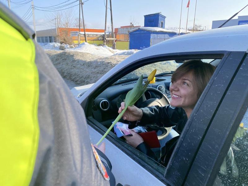 Сегодня в Сызрани госавтоинспекторы «тормозили» женщин. И дело вовсе не в дискриминации по половому признаку: повод для того чтобы остановить автомобиль с автоледи за рулем, был самый праздничный. Сегодня в Сызрани стартовала ежегодная акция «Цветы для автоледи!»: ее проводит Госавтоинспекция и «Авторадио». Суть акции проста: патруль останавливает автомобиль и поздравляет девушек-водителей с наступающим праздником. Автомобилистки были приятно удивлены, ведь вместо привычной проверки документов, а то и протоколов, госавтоинспекторы дарили цветы, желали счастья и семейного благополучия. А чтобы праздники не были испорчены, автоинспекторы напоминали о необходимости неукоснительного соблюдения «Правил дорожного движения».