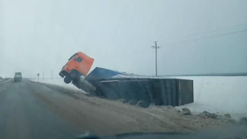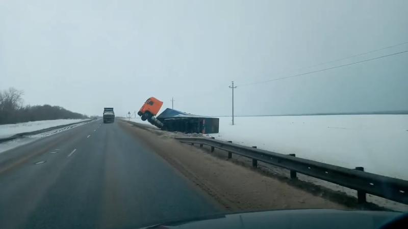 Тягач «встал на дыбы», угодив в кювет недалеко от Сызрани
