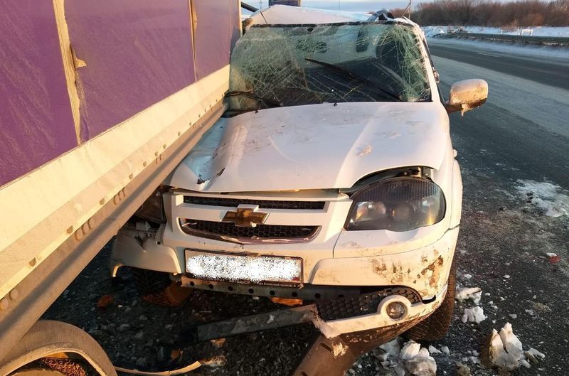 На ульяновской трассе под Сызранью внедорожник Chevrolet Niva врезался в стоящий большегруз - есть пострадавший