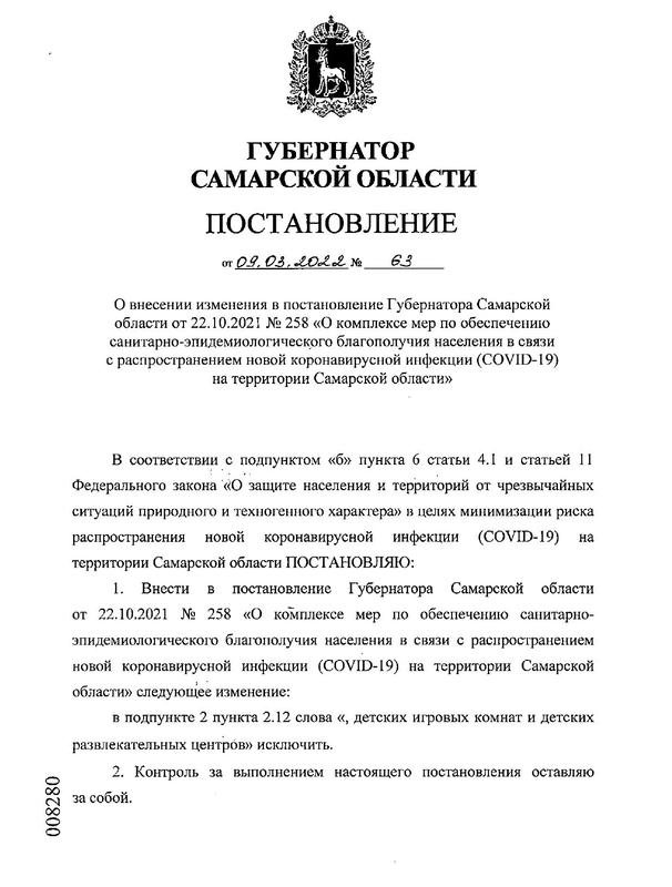 В Самарской области сняты очередные коронавирусные ограничения: в этот раз их отмена порадует и детей, и родителей, и предпринимателей. Сняты ограничения, наложенные ранее на работу детских игровых комнат и детских развлекательных комплексов. Постановление губернатора опубликовано сегодня, 9 марта. Наш регион постепенно отказывается от введенных ранее ограничений: так, в начале марта было разрешено проведение межрегиональных, региональных и муниципальных физкультурных мероприятий, а также спортивных соревнований среди несовершеннолетних лиц. Также детям разрешено посещать занятия в учреждениях дополнительного образования.