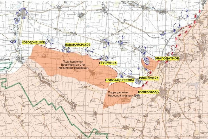 Министерство обороны РФ впервые опубликовало карту продвижения российских войск в Донбассе. В частности, на карте можно увидеть, что подразделения ВС РФ сейчас находятся рядом с населенными пунктами Новодонецкое, Новомайское и Егоровка. Также можно увидеть, что подразделения Донецкой республики вышли к населенным пунктам Новоандреевка и Кириловка. Кроме того, на карте видно что город Волноваха уже находится в тылу подразделений народной милиции ДНР. Напоминаем, что спецоперация Вооруженных сил РФ на Украине началась 24 февраля.