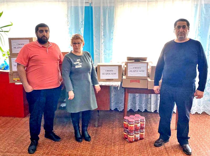 На коробках, упаковках написано: «Мы с вами, ребята!» «Мы своих не бросаем!» «Наша сила - сила единства».