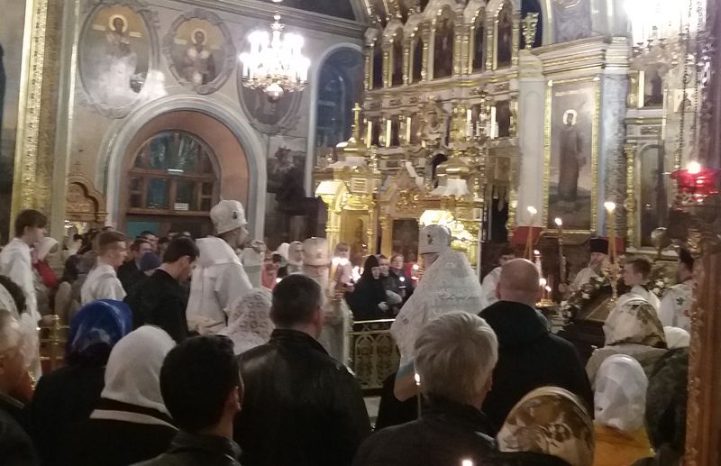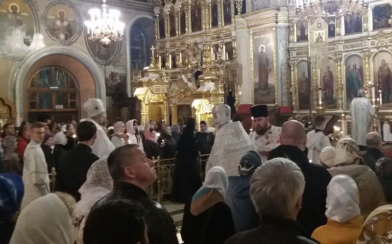 Праздничная служба закончилась около 03:30. Затем епископ Леонтий освятил пасхальную снедь тем, кто решил это сделать непосредственно в пасхальную ночь. Однако большинство верующих пришло именно на службу, а пасхи и куличи освятили еще вечером.