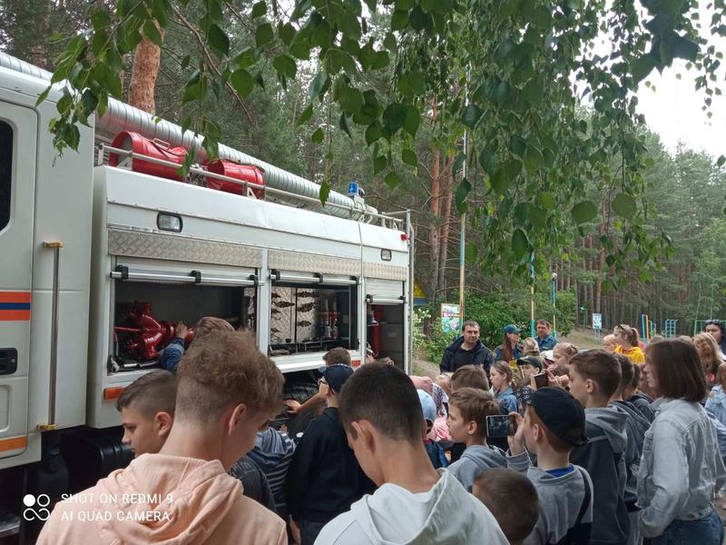попавшим в ДТП людям. Отдыхающие в лагере ребята сами тушили из брандспойта условный пожар,
