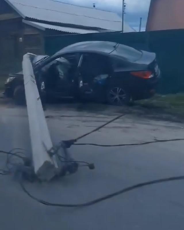 Автоледи свалила столб на свою иномарку: попавшим в ДТП девушке и ребенку потребовалась помощь медиков