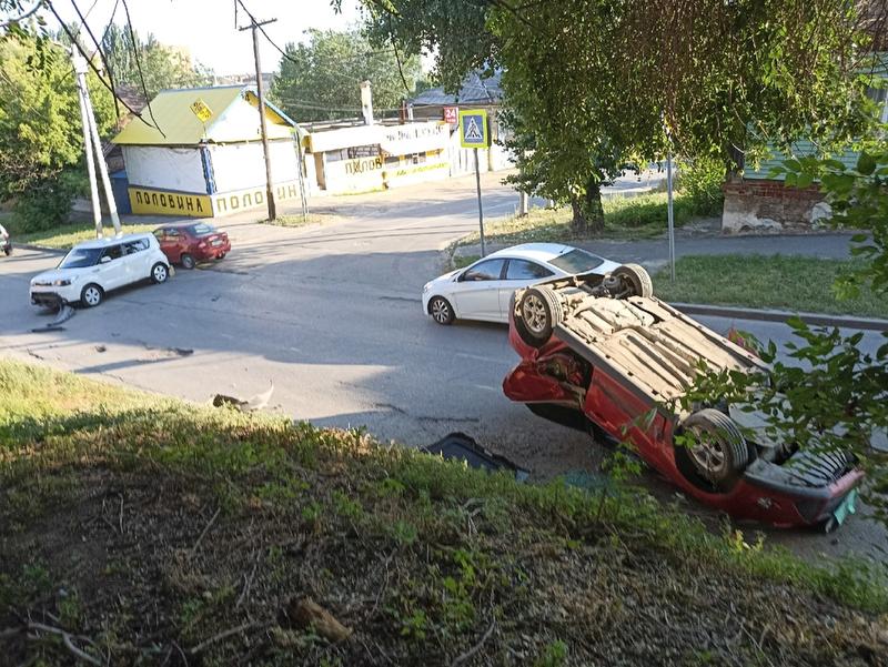 В центре Сызрани легковой автомобиль Ford «лег» на крышу в результате столкновения на перекрестке с другой легковушкой. ДТП произошло сегодня, 8 июля около 18 часов на перекрестке улиц Володарского и Свердлова. Kia Soul, предположительно, выезжала со стороны улицы Свердлова. В этот момент Ford красного цвета поднимался по улице Володарского в сторону улицы Рабочей. Удар пришелся в левый бок Ford, после чего иномарка заехала на насыпь и перевернулась на крышу.