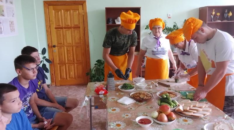 Ребята учились готовить блюда из кабачков, под присмотром бабушек-волонтеров. Кабачки выросли на школьном огороде. Подростки