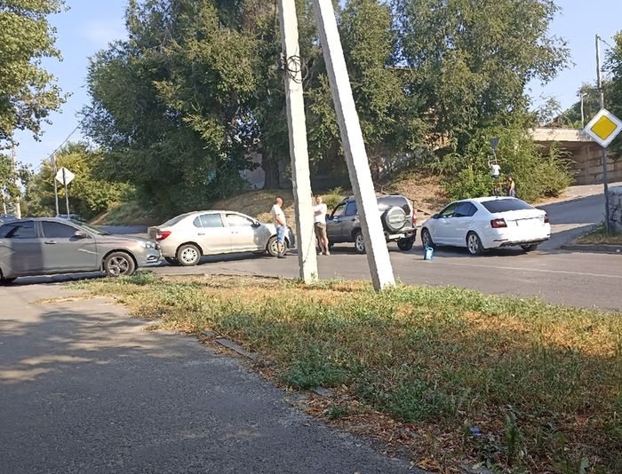 На перекрестке двух улиц Сызрани столкнувшиеся автомобили мешают проезду транспорта