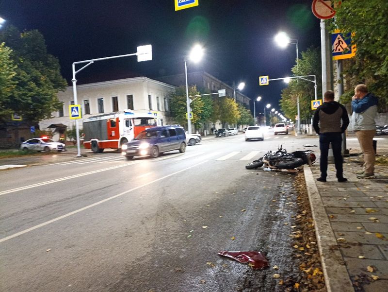 В центре Сызрани автомобиль сбил двух мотоциклистов - пострадавших увезли на скорой