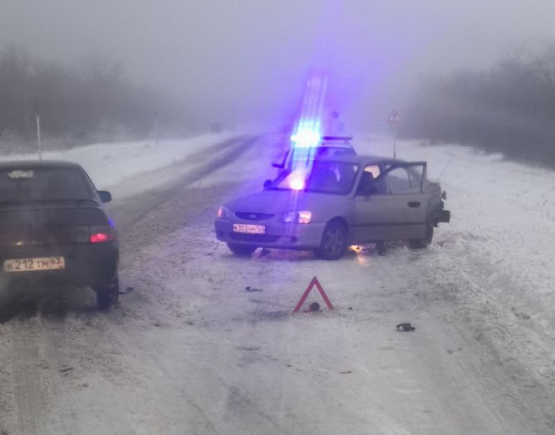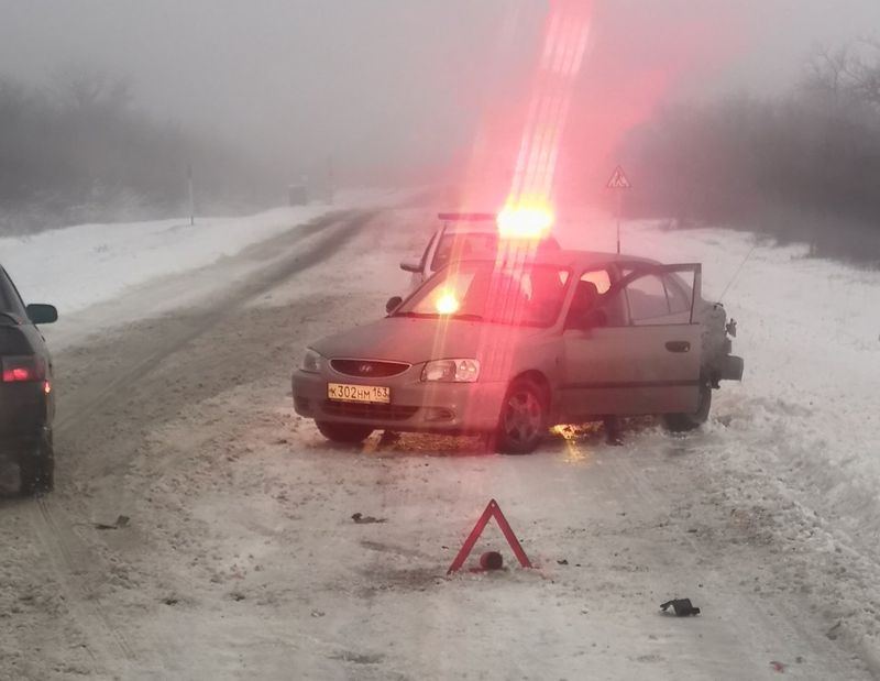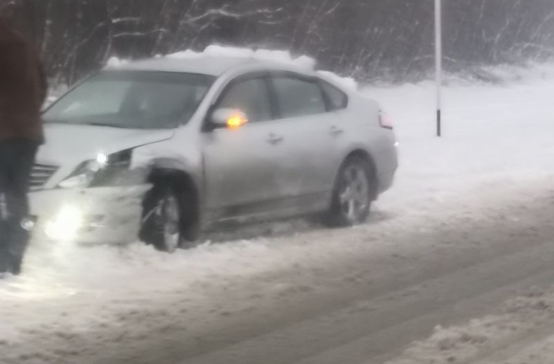 Недалеко от первого спуска к Октябрьску снова ДТП - на заснеженной дороге столкнулись две иномарки