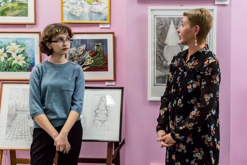 Выставку работ учащихся открыла ведущая - молодой преподаватель