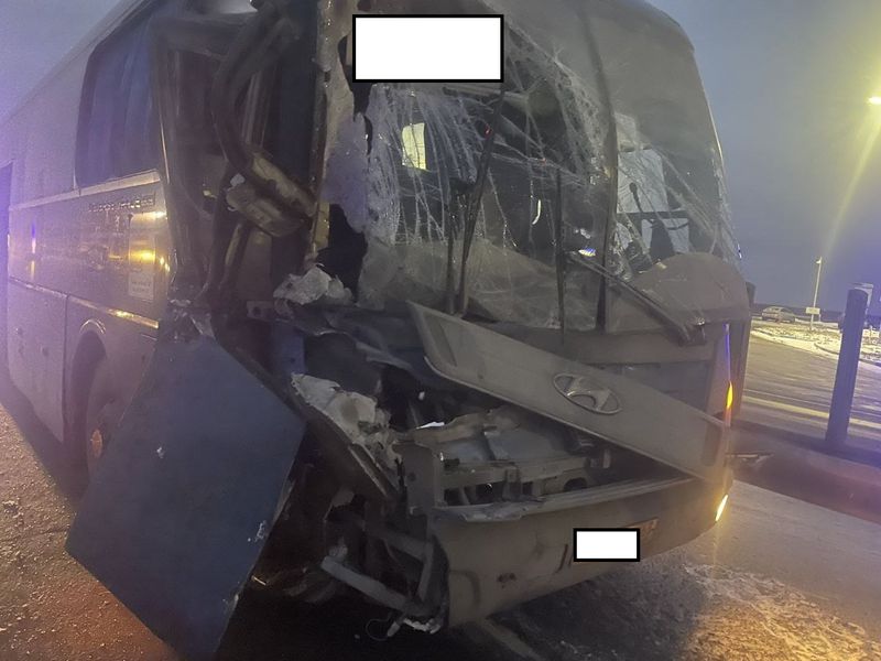 Сегодня днем на 1016 км трассы М-5 в Красноярском районе около 16:10 произошло жесткое столкновение грузовика Iveco и рейсового автобуса Hyundai. Сотрудники Госавтоинспекции оперативно прибыли на место ДТП, оградили место аварии, установили и опросили очевидцев происшествия. После столкновения фура улетела далеко в кювет, где опрокинулась на бок. Автобус с разбитой передней частью остался на дороге. В настоящее время обеспечен беспрепятственный проезд автотранспорта. По предварительной информации, медицинская помощь никому не понадобилась. Причины столкновения и сколько пассажиров находилось в салоне автобуса, не сообщается. Все подробности ДТП устанавливаются.