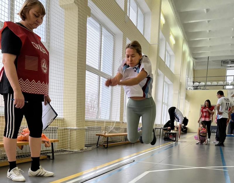 оружия, прыгали в длину с места, выполняли наклон вперед из положения