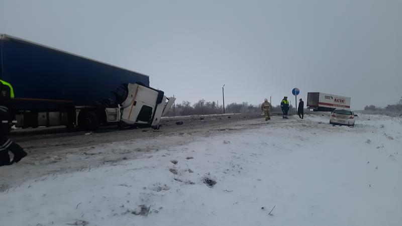 Под Сызранью, около села Ивашевка, которое расположено по ульяновской дороге, произошло жесткое столкновение. Около 08:35 не разминулись два большегруза - МАН и Камаз. От удара первый сложился, у второго оторвало кабину. Что могло стать причиной дорожно-транспортного происшествия, предстоит установить. Оба большегруза находятся на обочине дороги - МАН перевозил продукцию для сети магазинов Магнит - рядом была замечена вторая магнитовская фура. По информации ГУ МЧС России по Самарской области, пострадавших в этом ДТП нет.