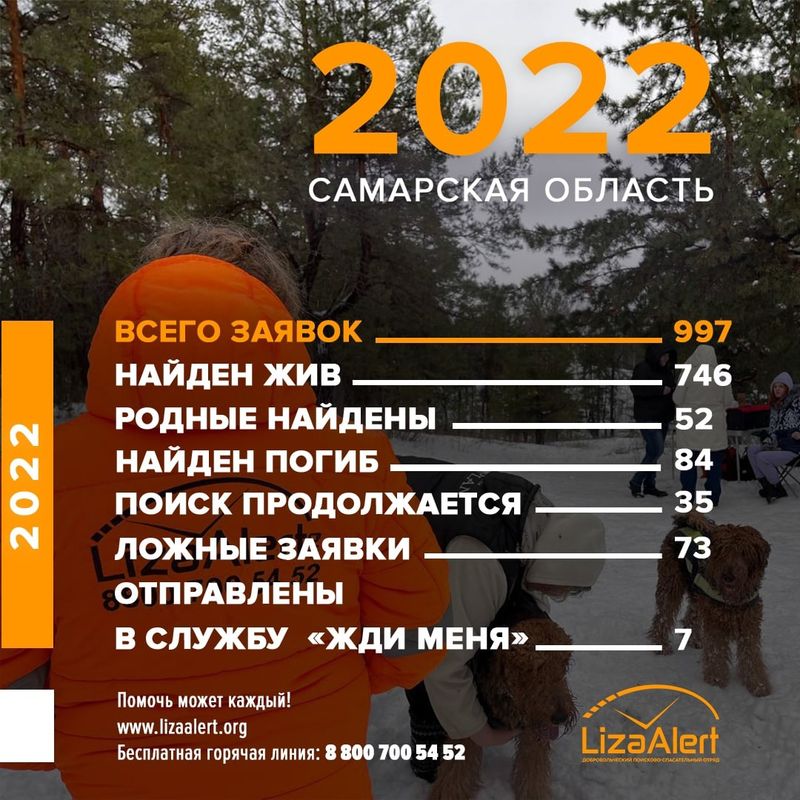 35 раз в Самарской области разворачивались поиски с участием направлением «Лес на связи» отряда «ЛизаАлерт». Это было возможным, когда потерявшийся был с включенным телефоном и мог хоть как-то взаимодействовать с поисковиками.