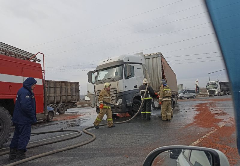 На трассе М-5 под Сызранью столкнулись две фуры - на месте работают полиция и пожарные