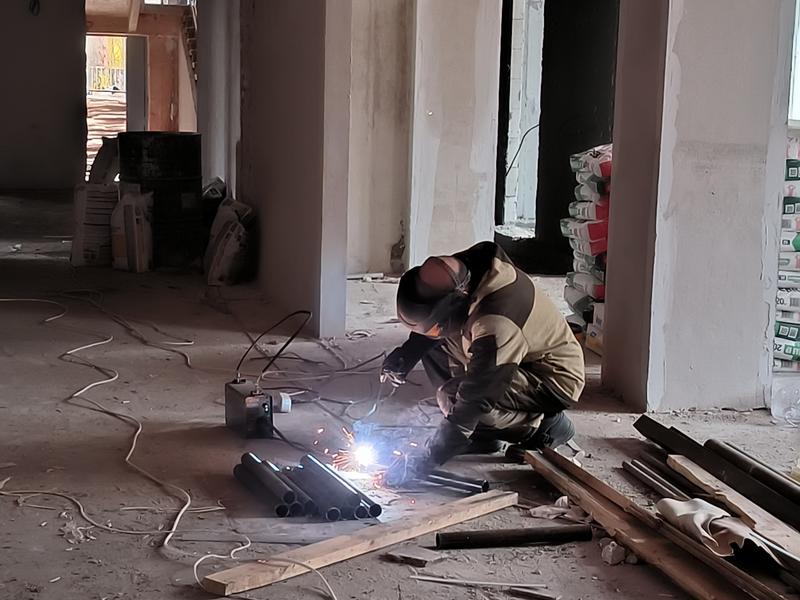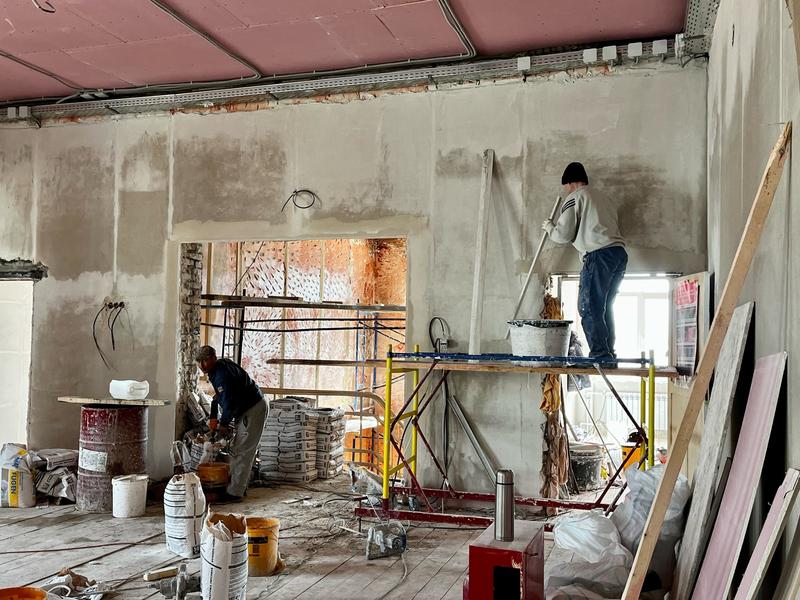 - Сразу хочу отметить добросовестное отношение подрядной организации к выполняемой работе. Специалисты оперативно провели демонтажные работы, обезопасили негорючими материалами деревянные перекрытия между этажами, укрепили дверные проемы. Отмечу, эти работы изначально не предусматривались. Их необходимость возникла после проведения вскрышных работ. Дополнительного внимания потребовал пол. Для того, чтобы он был абсолютно ровным, строители используют лазерное оборудование. На втором этаже будет негорючий линолеум, а на первом – современная декоративная плитка.