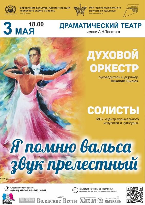 Сегодня вечером в сызранском драмтеатре пройдет концерт, на котором будет звучать романтичная, чарующая музыка. Новая концертная программа «Я помню вальса звук прелестный» в исполнении муниципального духового оркестра под управлением Николая Лысюка намечена на 18 часов. Она пройдет на сцене сызранского театра в рамках филармонического абонемента «Музыкальные встречи на Большой». «Вальс - один из самых романтичных и любимых танцев, объединяющий поколения и погружающий нас в состояние некоторой эйфории, - напомнили организаторы концерта. - Музыка вальса так прекрасна и гармонична, что её хочется слушать снова и снова. Она завораживает, уносит в мир чарующей мечты, красоты, романтических чувств, дарит легкое праздничное настроение».