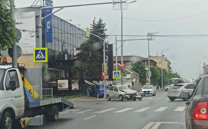 В центре Сызрани утром произошло ДТП, автомобиль выбросило к КРЦ «Улица»