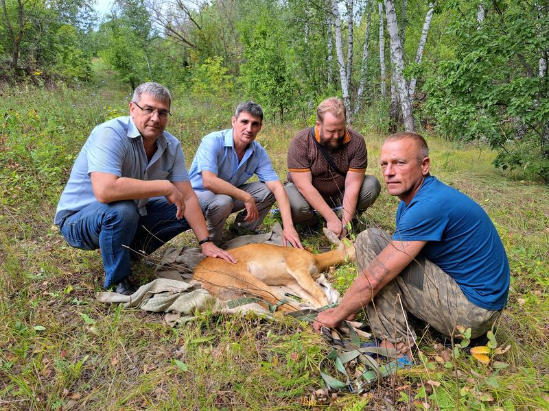 Спустя 10 минут косуля была погружена в машину и отправилась за город – в Волжский район. Подходящее для выпуска и обитания место было быстро найдено и, козлик, немного отдохнув под сенью березок и выпив напоследок еще пару-тройку литров воды, отправился по своим делам.