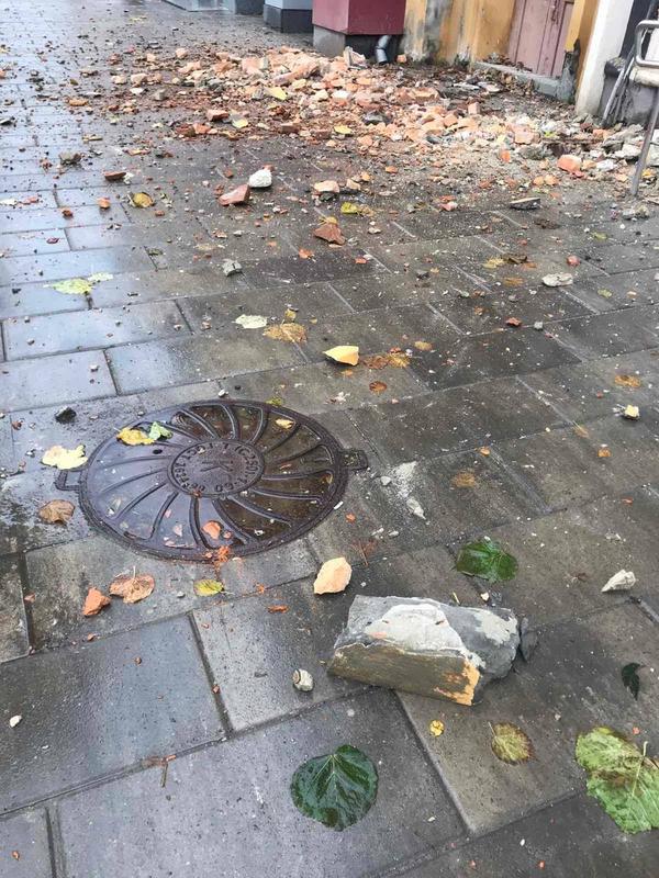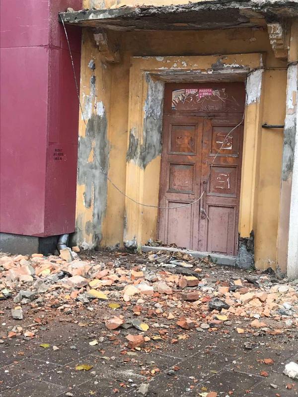 «А у нас до праздника очередное ЧП», - передают жители «сталинки» на улице Советской, 114. В кирпичном здании 1937 года постройки часть фасадной кладки рухнула на тротуар. Кирпичи упали с высоты четвертого этажа. По счастливой случайности упавшие кирпичи никого не убили и не покалечили - а до беды было недалеко. По сообщению в сети одной из жительниц дома, гостья женщины намеревалась перейти дорогу - но спешила и пошла не по пешеходному переходу, расположенному как раз вблизи упавших кирпичей, а в нарушении ПДД решила сократить путь и перешла дорогу не по зебре. «Те громадные куски штукатурки, что упали на землю, лишили бы её жизни. Даже на расстоянии она испытала шок», - сообщает женщина.