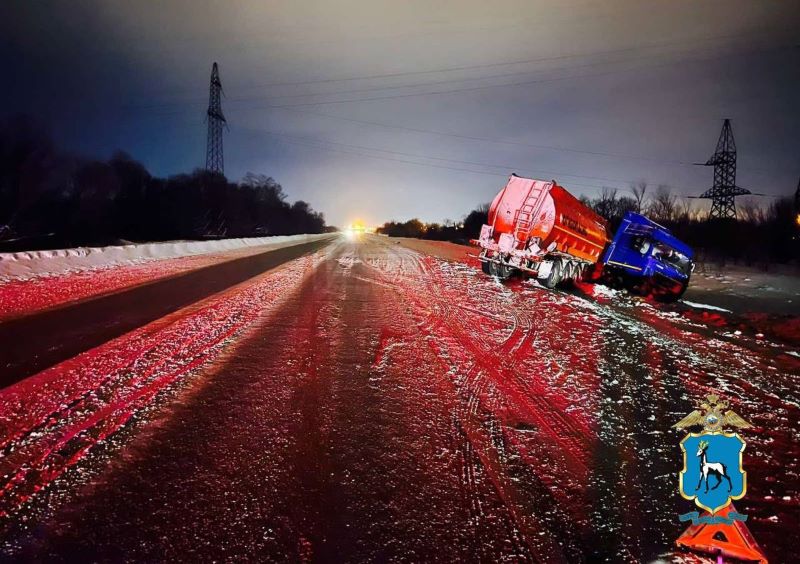 ДТП произошло вблизи города Отрадный. По предварительной информации, собранной сотрудниками ГИБДД следует, что в 20:30 водитель автомобиля «Лада Калина», двигаясь в направлении г. Бугуруслан, на 94 км. автодороги «Самара - Бугуруслан» выехал на встречную полосу в месте, где это разрешено, и допустил столкновение с пустым бензовозом. Водитель легкового автомобиля скончался на месте происшествия. На фото видно, что от легкового автомобиля практически ничего не осталось. Бензовоз съехал в кювет. Пострадал ли водитель бензовоза - неизвестно. Сотрудники Госавтоинспекции устанавливают все обстоятельства произошедшего.