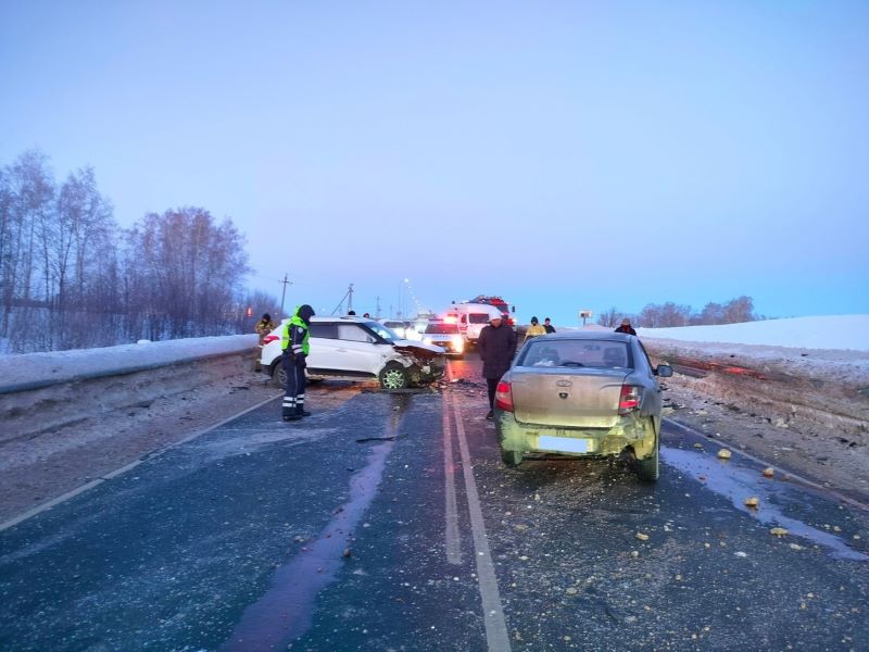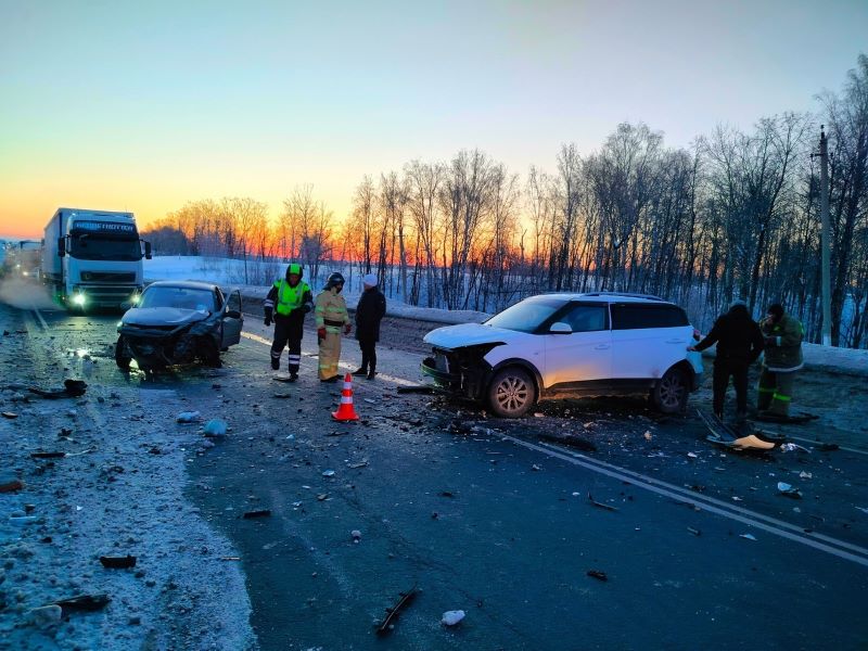 Сегодня утром, в 7 часов 14 минут по системе-112 поступила информация о том, что на 1152 км автодороги М-5 «Урал» произошло дорожно-транспортное происшествие. На место вызова был направлен дежурный караул пожарно-спасательной части № 118 - одна единица техники и четыре человека личного состава. Также к месту происшествия были вызваны бригада медицинской скорой помощи и экипаж ГИБДД. По прибытии на место вызова было установлено, что произошло встречное столкновение двух легковых автомобилей: Hyundai Creta и Lada Granta.