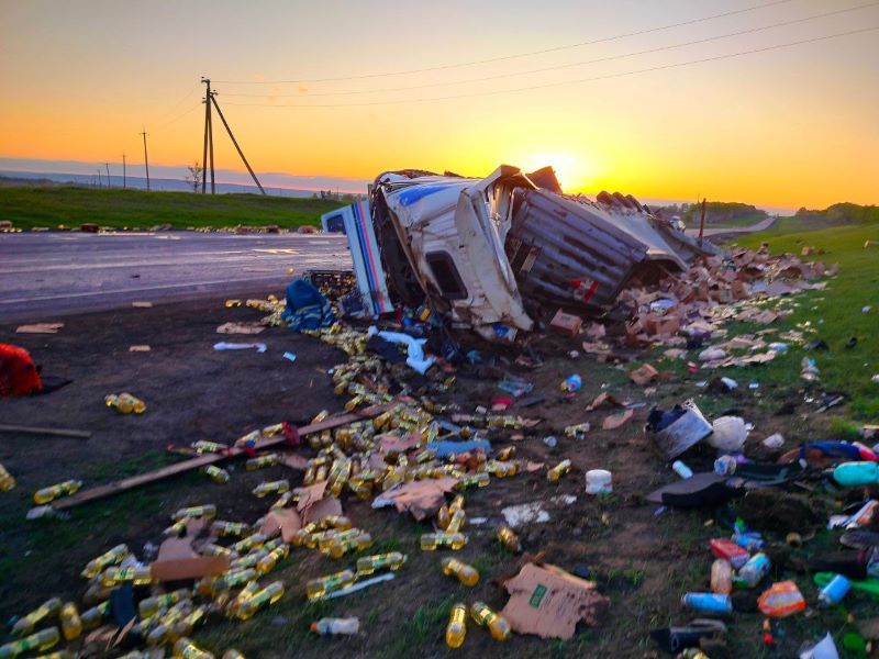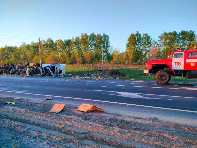 Сегодня рано утром, примерно в 04.14, на трассе на 1158 км автодороги М-5 Урал произошло опрокидывание большегруза Вольво, груженного растительным маслом. На место аварии выехали оперативные службы: пожарные-спасатели из части №118 противопожарной службы, ГИБДД и медработники. Сама машина сильно пострадала, но также пострадал водитель, которому потребовалась срочная госпитализация с места аварии. Как видно по фото, весь товар, подсолнечное масло, разлетелся по дороге. Смывать его пришлось пожарным-спасателям. Причины происшествия устанавливаются.