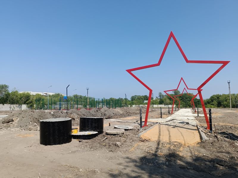 Строительные бригады продолжают работать на объекте, который создается с нуля на ул.Коммунистической в районе РМЗ. Напомним, реновация района проходит в рамках федерального проекта «Формирование комфортной городской среды». Сквер находится вблизи школы №28. За неделю строители успели подготовить пешеходные дорожки под асфальтировку и установили три ярких звезды. Как сообщила председатель местного ТОС Анна Осадчая, сквер изначально был запланирован в патриотической тематике. Именно здесь будут проходить праздники района, патриотические уроки мужества для учеников школы. Важно, что в районе появилась новая универсальная спортивная площадка. Бригадам осталось довести территорию сквера «до ума», в т.ч.выполнить асфальтировку и установить лавочки и ограждения объекта.