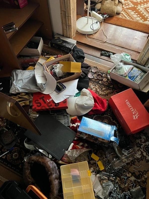 зачем-то шкаф выпотрошил в прихожей. Бутылку искали или что? Но там