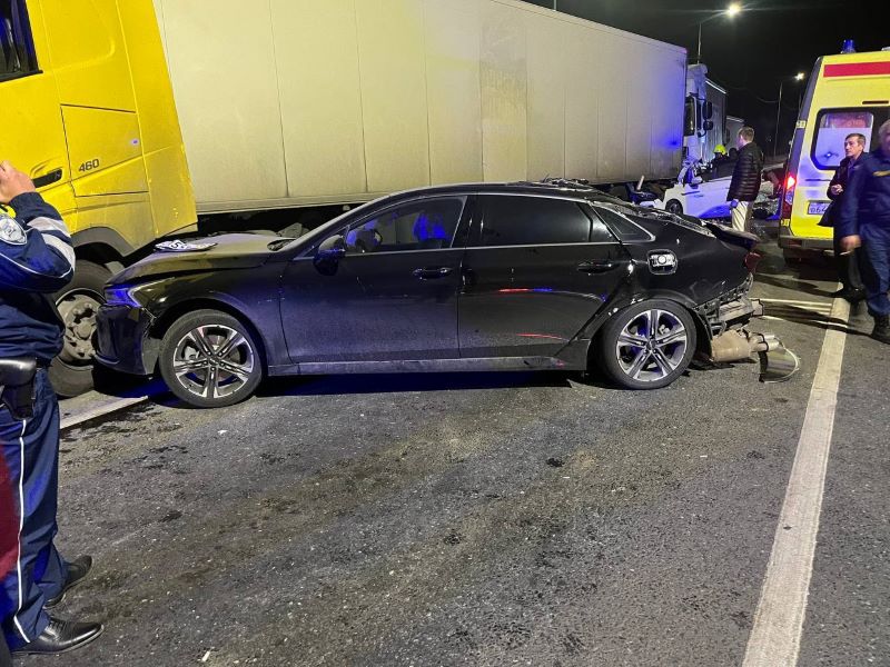 По предварительным данным Госавтоинспекции водитель большегруза DAF допустил наезд на легковые автомобили Kia и Geely, а также большегруз Volvo, которые остановились на красный сигнал светофора. Обстоятельства ДТП, количество пострадавших и степень телесных повреждений уточняются. Движение по автотрассе идет в рабочем режиме.
