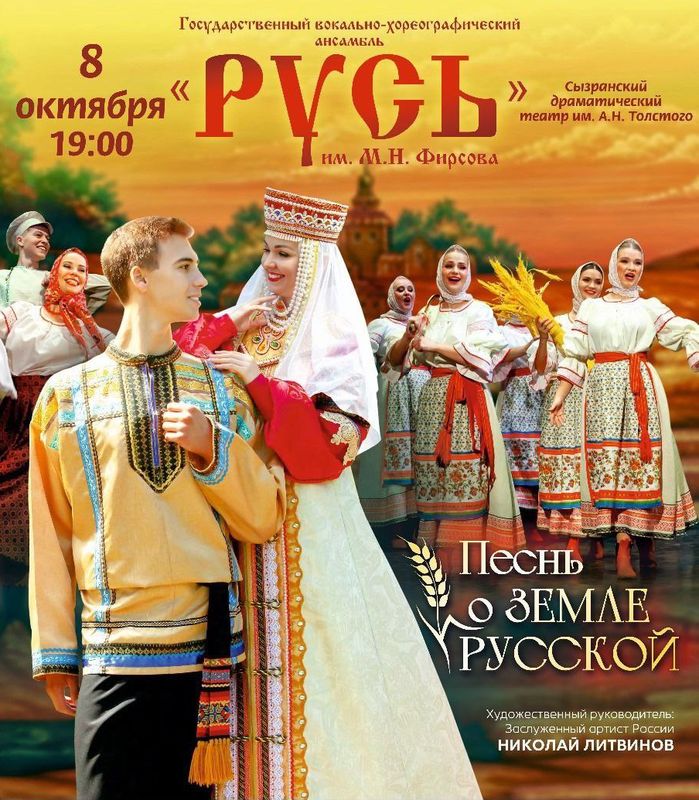 8 октября 19.00 Концерт Государственного вокально-хореографического ансамбля «Русь» имени Михаила Фирсова, г.Владимир.
