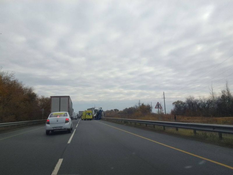 Серьезная авария произошла на трассе М-5 в районе съезда на Заборовку - о ней сообщает корреспондент портала «маленькая Сызрань». На данном участке дороги, после 11 часов, столкнулись две фуры, не исключено участие в ДТП легкового авто. Столкновение, по предварительным данным, было лобовое, оба большегруза получили значительные повреждения. Одну из фур от удара выбросило с дороги в кювет; у нее разбит кузов, и вдоль обочины на много метров рассыпаны коробки с перевозимым товаром. У второго большегруза разбито лобовое стекло, помята передняя часть кабины.