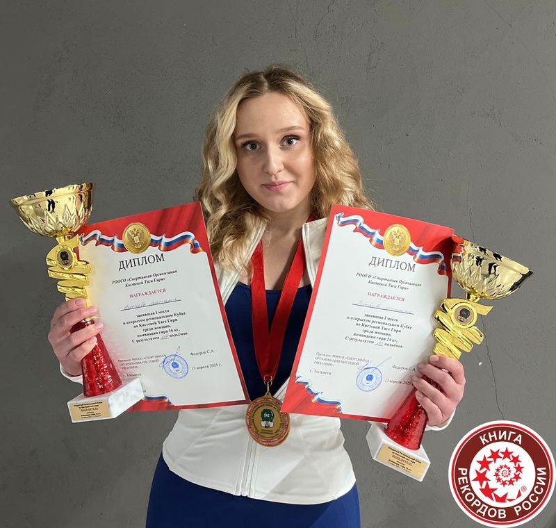 Имя спортсменки из Сызрани вошло в Книгу рекордов страны. Анастасия Воробьева установила новый рекорд России в дисциплине «кистевая тяга гири» - ее достижение занесено в Книгу рекордов России. На открытом региональном Кубке она за 10 минут подняла гирю весом 16 кг 450 раз, превзойдя прежний рекорд в 428 повторений, который также принадлежал спортсменке из Сызрани – Юлии Петровций, напоминает Книга рекордов России. Сейчас Анастасии Воробьевой 23 года, а свой рекорд она установила в апреле 2025 года, в возрасте 22 лет. Девушка занимается гиревым спортом уже семь лет и за это время достигла выдающихся результатов.