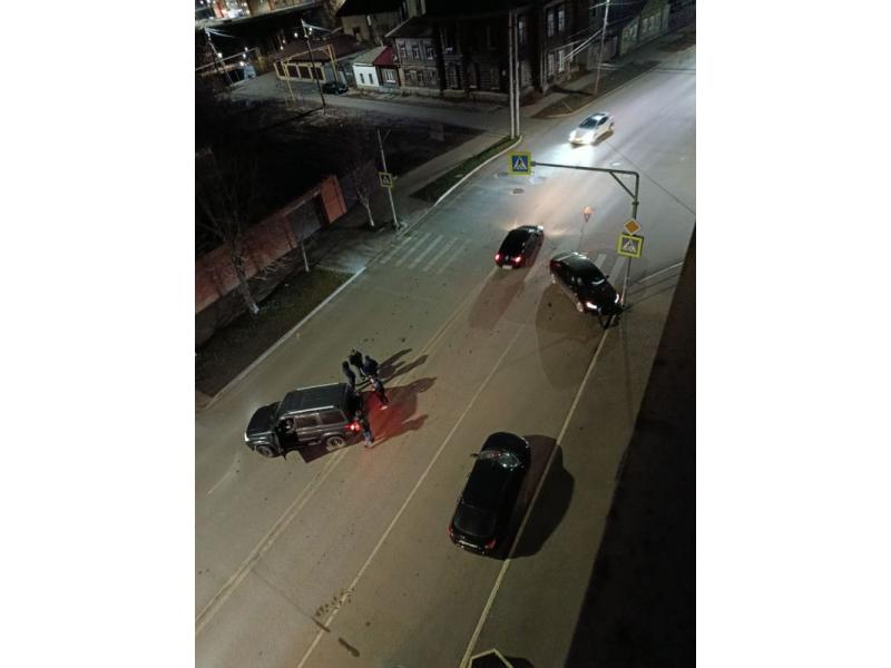 Два легковые автомобиля попали в ДТП в центре Сызрани сегодня вечером. Судя по фото, сделанном из многоэтажного дома, вероятнее всего - из окна дома №40 по улице Ульяновской, у «зебры» рядом с пожарной частью столкнулись внедорожник и еще один легковой автомобиль. Внедорожник от удара вылетел через две полосы. Легковой седан уперся бампером в бордюр. На фото внедорожник окружили люди - не исключено, что это участники столкновения или группа поддержки водителя. Информации о возможных пострадавших пока нет.