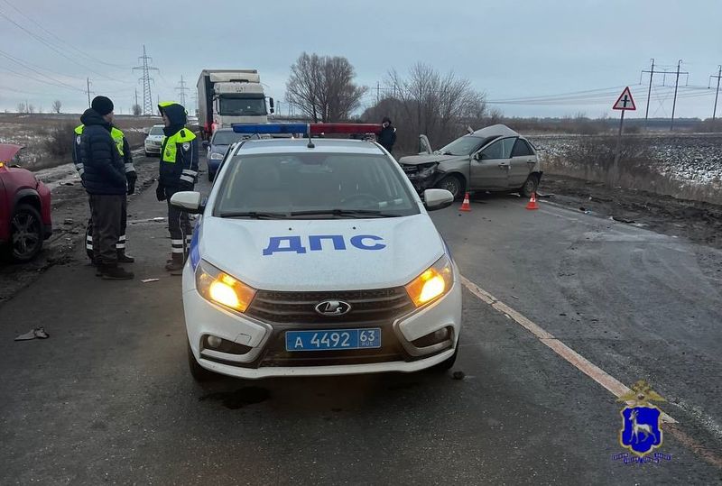 Полицейские из подбитой в ДТП машины бросились помогать раненым. Сегодня утром в Самарской области произошло смертельное ДТП - погибла женщина. По данным областного главка полиции, в 07:15 на 39 км автодороги «Самара - Пугачёв - Энгельс - Волгоград» столкнулись пять автомобилей. По предварительным данным сотрудников Госавтоинспекции, 40-летний водитель автомобиля Jetour не учёл погодные и дорожные условия, не выбрал безопасную скорость и дистанцию и допустил столкновение с автомобилем Lada Granta, который остановился на запрещающий знак светофора. В салоне Granta была пассажирка. От удара Granta столкнулась с впереди стоящей машиной - Chevrolet Lacetti. После этого отечественный легковой автомобиль выбросило на полосу встречного движения, где он лоб в лоб столкнулся с Renault Logan, который двигался на разрешающий сигнал светофора.