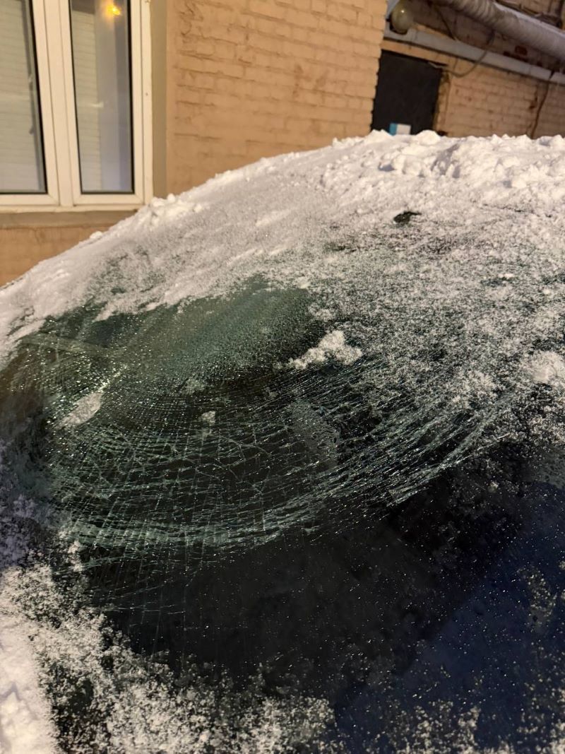 На машину самарского баяниста Сергея Войтенко рухнула глыба снега со льдом