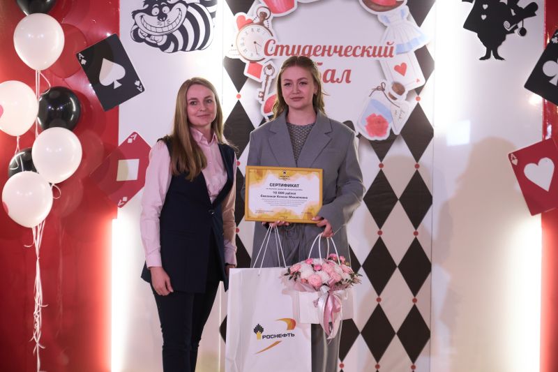 Дарья Алексеевна Симонова (АО «Сызранский НПЗ») не просто поздравила студентов, но и вручила сертификат на премию предприятия студентке целевого обучения Ксении Смолиной. Это - живой пример того, как компания инвестирует в кадры ещё на этапе учёбы.