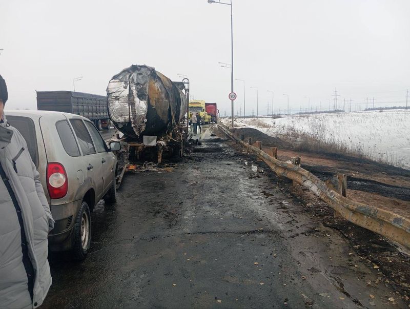 на трассе столкнулись 4 большегруза; один из них вспыхнул. Как сообщил