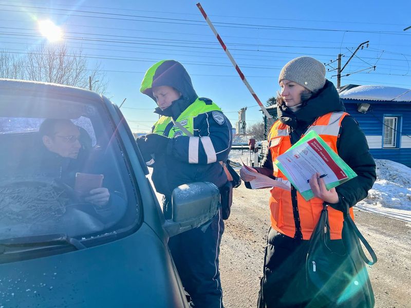 Сегодня сызранские госавтоинспекторы останавливали автомобилистов около железнодорожного переезда. Вместе с сотрудниками работал заместитель начальника Сызранской Госавтоинспекции Алексей Долгов. ГАИ Сызрани провела акцию «Внимание, переезд!» совместно с железнодорожниками. Акция прошла около Ж/Д переезда на 980 км 1 пикет перегон Октябрьск - Правая Волга. Она была направлена на предупреждение дорожных аварий на переездах. Сотрудники Госавтоинспекции раздавали профилактические памятки о правилах проезда по железнодорожным переездам и напоминали о простых, но важных правилах: что начинать движение можно только при поднятом шлагбауме и выключенной сигнализации.