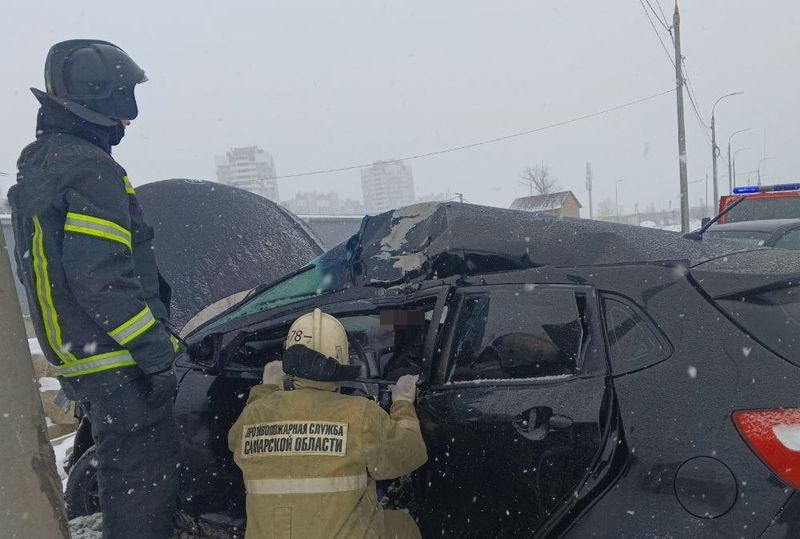 Пострадавшего в ДТП в Самарской области человека пришлось извлекать из покореженной иномарки при помощи пожарных - спасателей. ДТП произошло днем 20 февраля, около 14 часов в поселке Придорожный Волжского района. Автомобиль KIA в пути следования наехал на препятствие: судя по фото регионального центра ГО и ЧС - на столб. Что не удивительно: дорога в месте аварии явно не чищена, и достаточно было малейшей ошибки, чтобы автомобиль потерял управление и врезался в столб. От удара автомобиль перекосило - у иномарки повело крышу, двери, капот, имеются и другие повреждения. Человек в автомобиле получил травмы, его смогли достать из авто и передать медикам скорой; мужчина был госпитализирован.