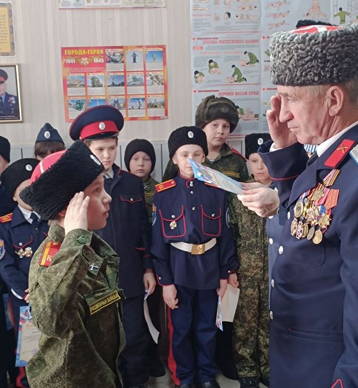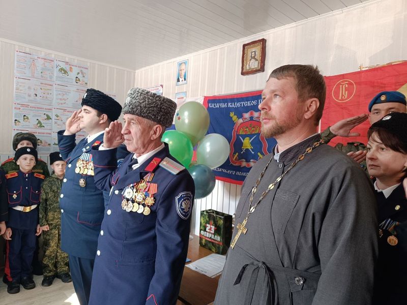 Атаман Хуторского казачьего общества есаул Ю. Г. Лыгин пожелал быть бравыми казаками и нести с гордостью честь кадета-казака. Также участников торжества поздравил есаул В. А. Милахов. А затем протоиерею Николаю Гордееву была вручена казачья медаль «За отличие».